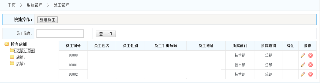 1.查詢:可以通過(guò)員工的編號(hào) 姓名或者手機(jī) 快速的查找到該員工