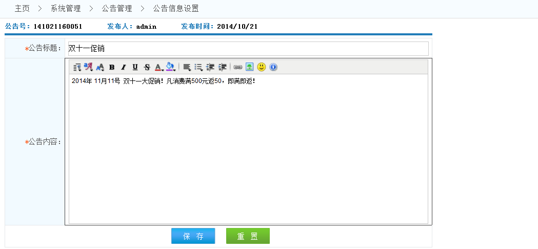 2.公告列表:在公告列表的操作一欄 可以對改公告進(jìn)行修改和刪除的操作