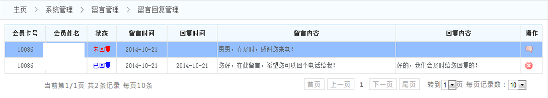 留言列表:在留言列表的狀態(tài)的一欄會(huì)標(biāo)注未回復(fù)或已回復(fù);在留言列表的操作一欄