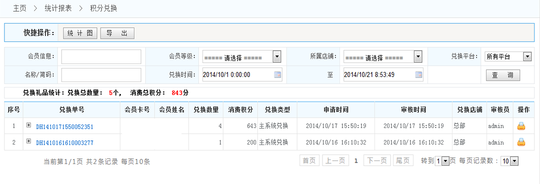 3.兌換禮品統(tǒng)計:將統(tǒng)計在滿足設(shè)定的條件下的所有兌換禮品的概況