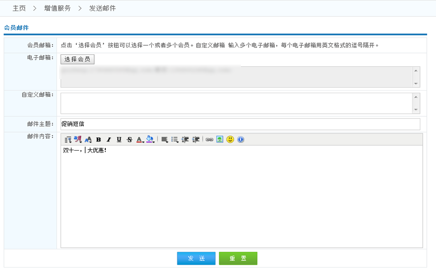 1.電子郵箱:點擊選擇會員 滿足條件的會員的郵箱會自動添加到郵箱列表中