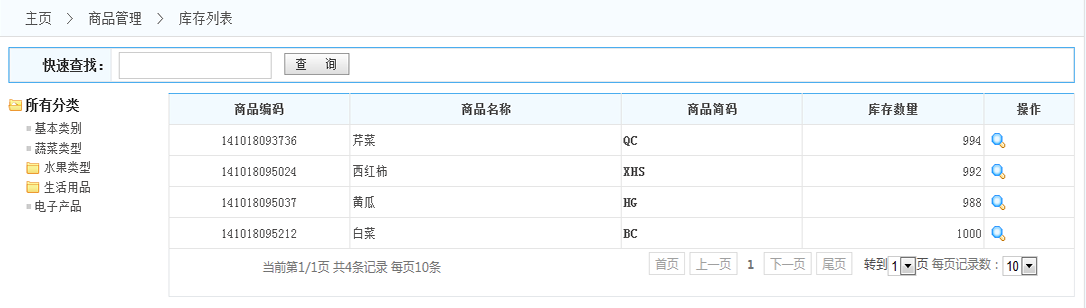 庫(kù)存列表:點(diǎn)擊進(jìn)入庫(kù)存列表信息頁(yè)面 如下圖: