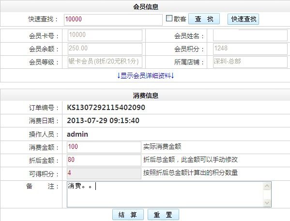 不用選擇產(chǎn)品的一種結(jié)算方式,直接輸入會員的消費(fèi)金額,就可以完成消費(fèi)。