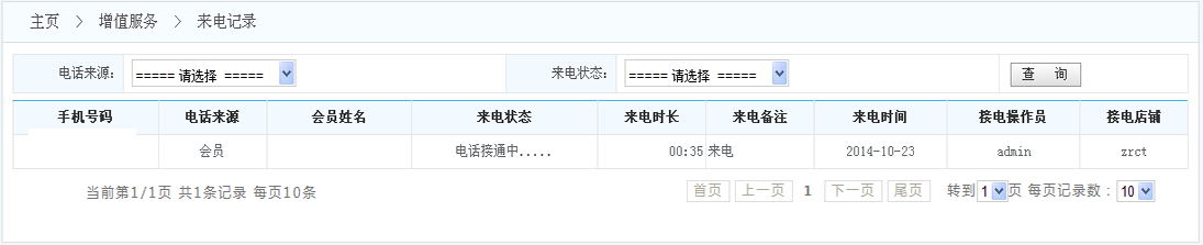 2.查詢:按照條件查詢出來(lái)電彈屏的記錄數(shù)據(jù)(例如 根據(jù)電話來(lái)源