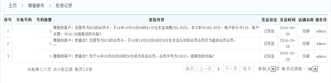 -> 五通一卡通云會員管理系統(tǒng)短信記錄